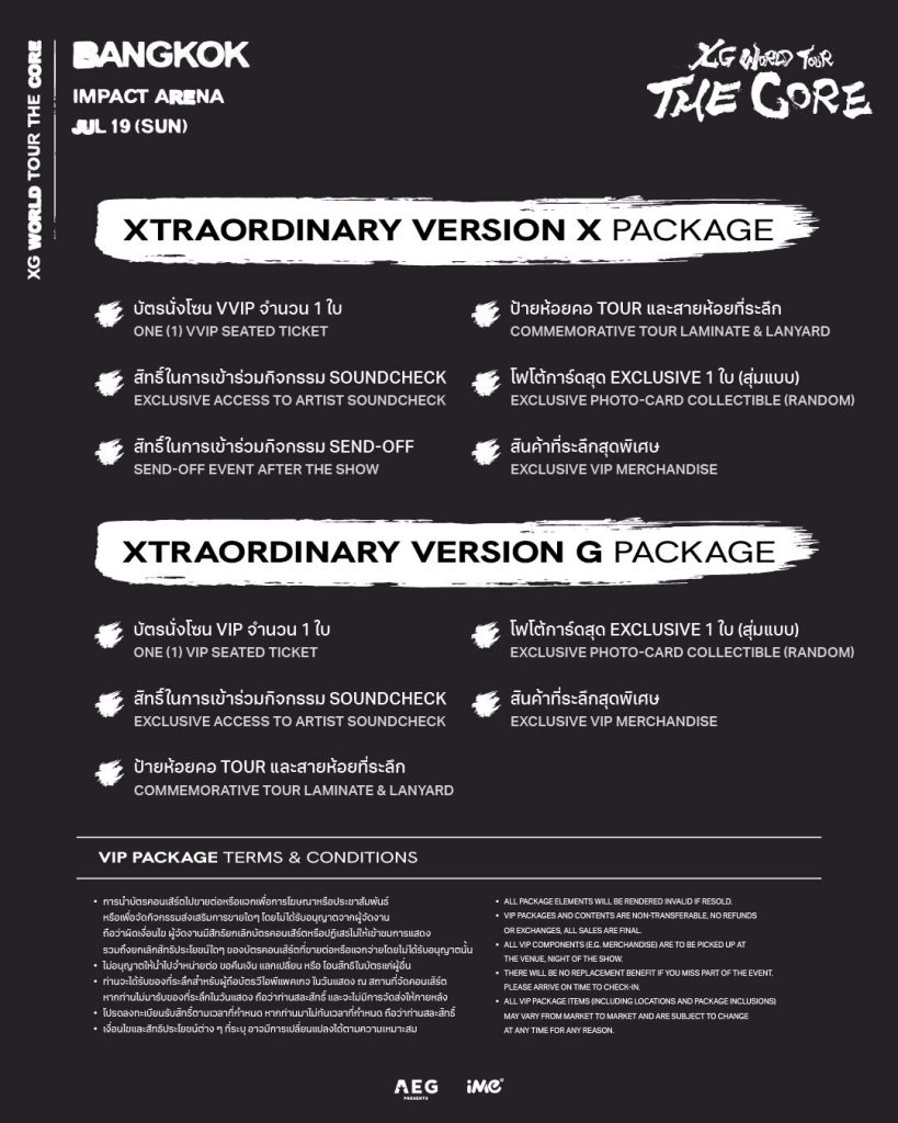 หลังจากความสำเร็จอย่างท่วมท้นจนฉุดไม่อยู่ สมาชิกทั้ง 7 คนของ XG อันประกอบไปด้วย จูริน (JURIN), จิสะ(CHISA), ฮินาตะ (HINATA), ฮาร์วีย์ (HARVEY), จูเรีย (JURIA), มายะ (MAYA) และ โคโคนะ (COCONA) พร้อมแล้วที่จะปลดปล่อยพลังที่แท้จริงจากภายในสู่การเดินทางครั้งใหม่ใน “XG WORLD TOUR: THE CORE” ซึ่งทัวร์ครั้งนี้ได้เปิดตัวอย่างสวยงามในประเทศญี่ปุ่นด้วยกระแสตอบรับอย่างมหาศาล จนสามารถสร้างสถิติบัตรจำหน่ายหมดเกลี้ยง (Sold Out) ในหลายเมืองใหญ่ อาทิ โยโกฮามา, โอซาก้า, นาโกย่า และเมืองอื่นๆ ภายในทัวร์ครั้งนี้ แฟนๆ จะได้ชมการแสดงในเพลงฮิตที่คุ้นเคยอย่าง‘LEFT RIGHT’ และ ‘WOKE UP’ รวมถึงเพลงใหม่ล่าสุดอย่าง‘HYPNOTIZE’ และ ‘ROCK THE BOAT’ และตอนนี้ถึงเวลาแล้วที่ XG จะนำประสบการณ์การแสดงที่ทลายทุกขีดจำกัด และความสร้างสรรค์ที่เหนือจินตนาการมาสู่กรุงเทพฯ ในเดือนกรกฎาคมนี้ โดยจะมาพร้อมกับโปรดักชันที่ยิ่งใหญ่ และอลังการกว่าที่เคยมีมา!
